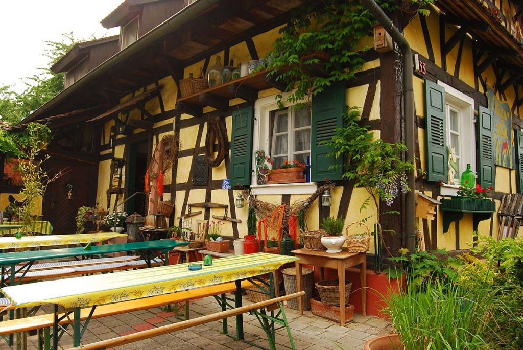 Uraltes Bauerngemäuer im Hanauer Land am Rhein. Liebevolle Accessoires und badische Gastlichkeit, Leckeres aus der Region, dazu, je nach Wunsch, ein badisch-elsässisches Kultur-Kunst-Stück von besinnlich-verträumt bis amüsant-spritzig.